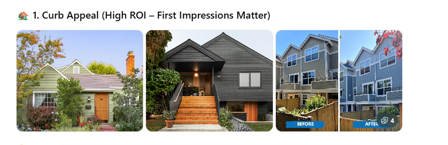 Entry doors, exterior paint, and landscaping can deliver strong returns. Neutral color palettes such as black, gray, and natural wood tones tend to appeal to the widest range of buyers. Exterior lighting and clean landscaping also improve first impressions.